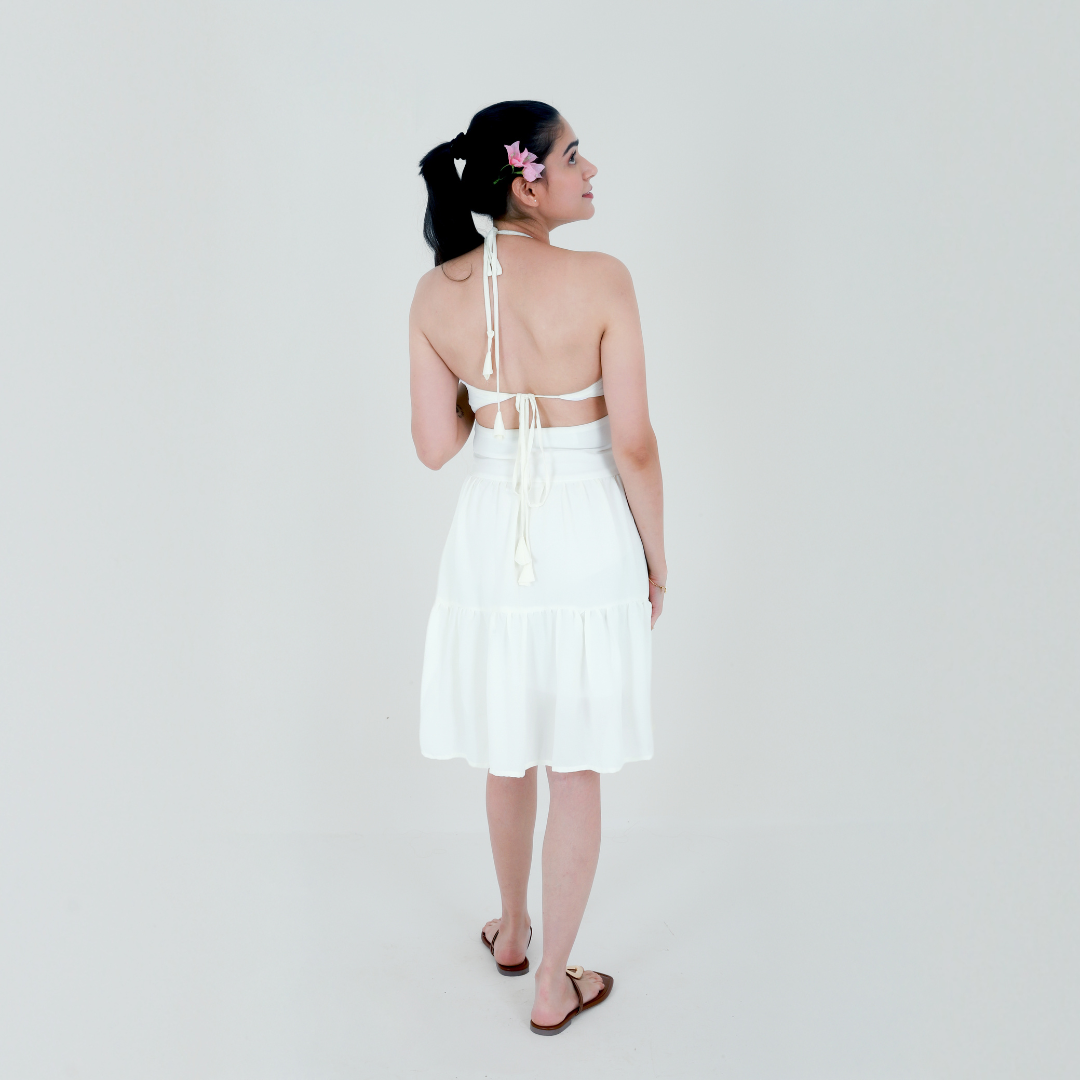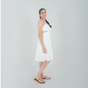 This blossom dress offers a backless design with padded cups, airy feel perfect for warm days, while the delicate blossom pattern adds a touch of natural beauty. Its lightweight fabric ensures comfort and breathability, making it an ideal choice for daytime outings or summer events.